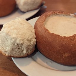We stopped by here for our first clam chowder bowl. We originally wanted to eat at the grotto restaurant but they had a 45 min wait and we were starved. They mentioned that the market had same chowder across the way and we got seated right away outside. We split the large bowl and the garlic bread came on the side. Very thick and tasty ! Would def come back again. The house salad was very good. The fish tacos were okay. Would def return.